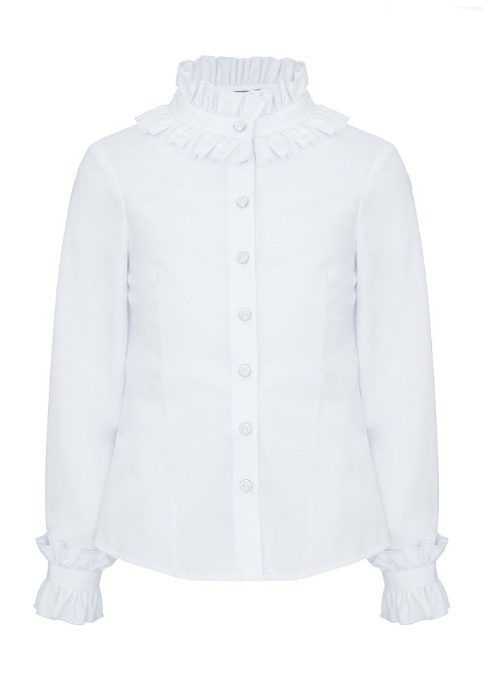 - Блузка выглядит очень нарядно и модно, придает любому школьному образу парадный и праздничный вид.