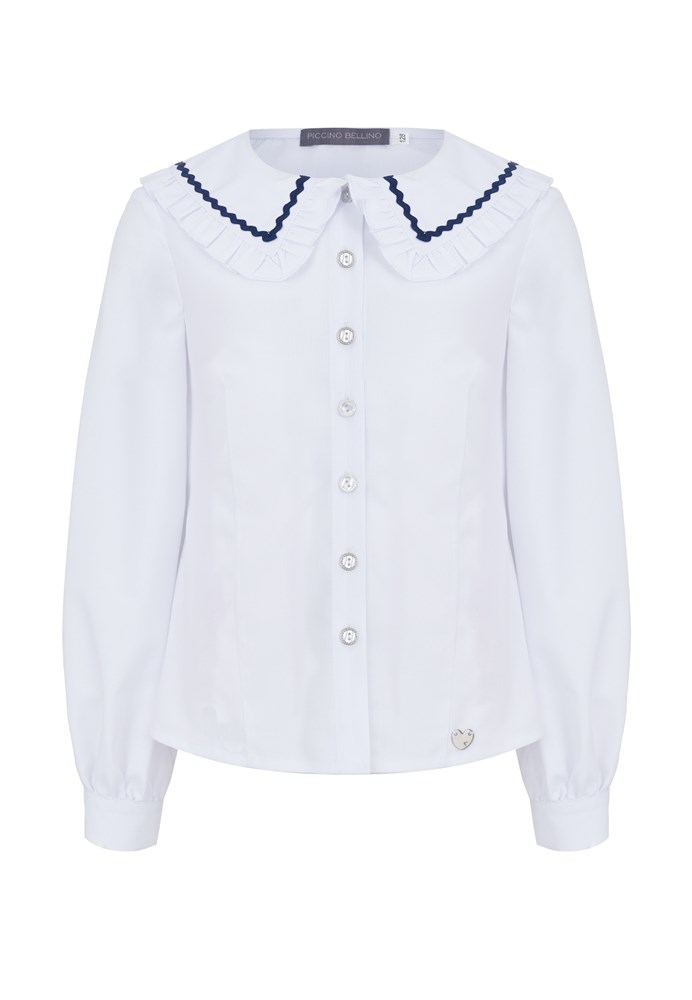 Блузка с воротником украшенная синей тесьмой, премиальная линия
